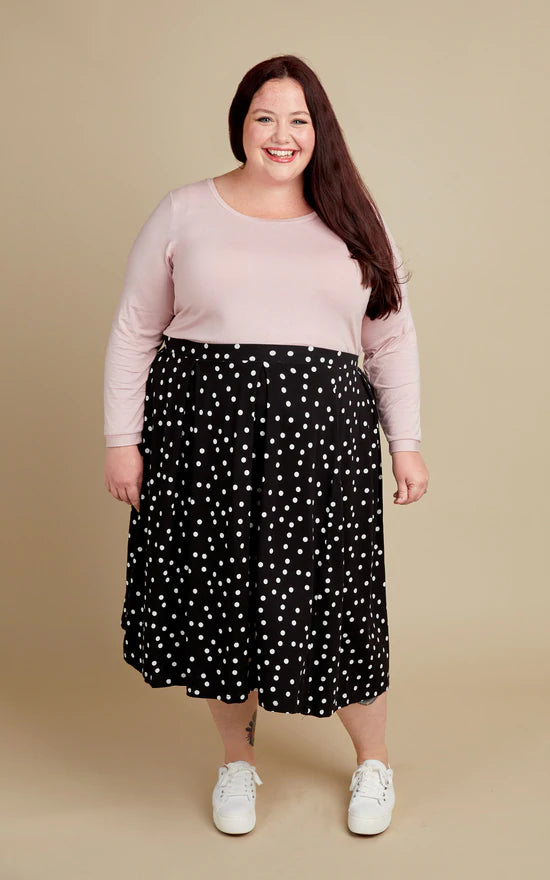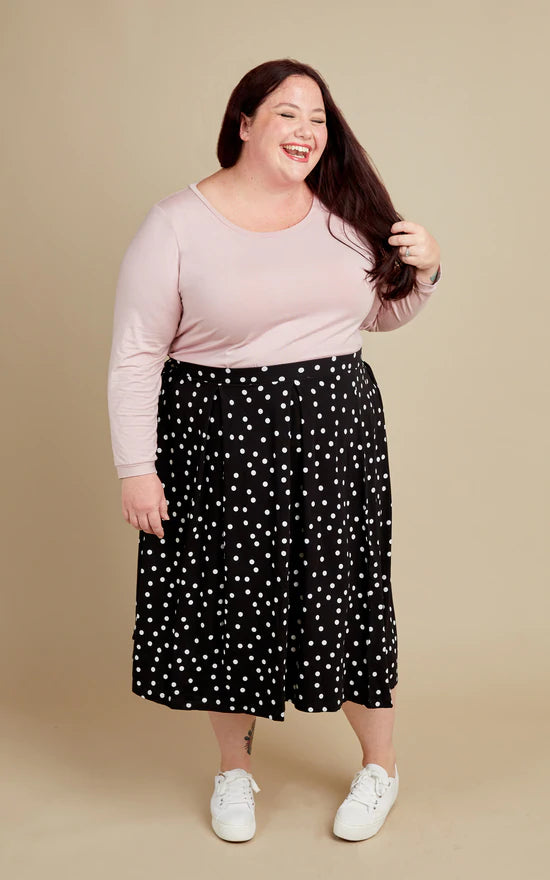 Meet the Concord, your new favorite tee! Fully customizable, this knit t-shirt is a classic wardrobe staple that's designed for curves with cup sizes from C – H and thoughtful proportions. Forget about t-shirts that are too tight at the bust, baggy and hanging off your shoulders, or bunching into your armpits: the Concord is designed for a body just like yours.