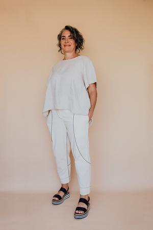The Darlow pants are a cropped, tapered pant full of interesting panel lines and details. They have been designed to give a new spin to the basic pant and can be worn as an easy and casual option or dressed up for a nice evening option.